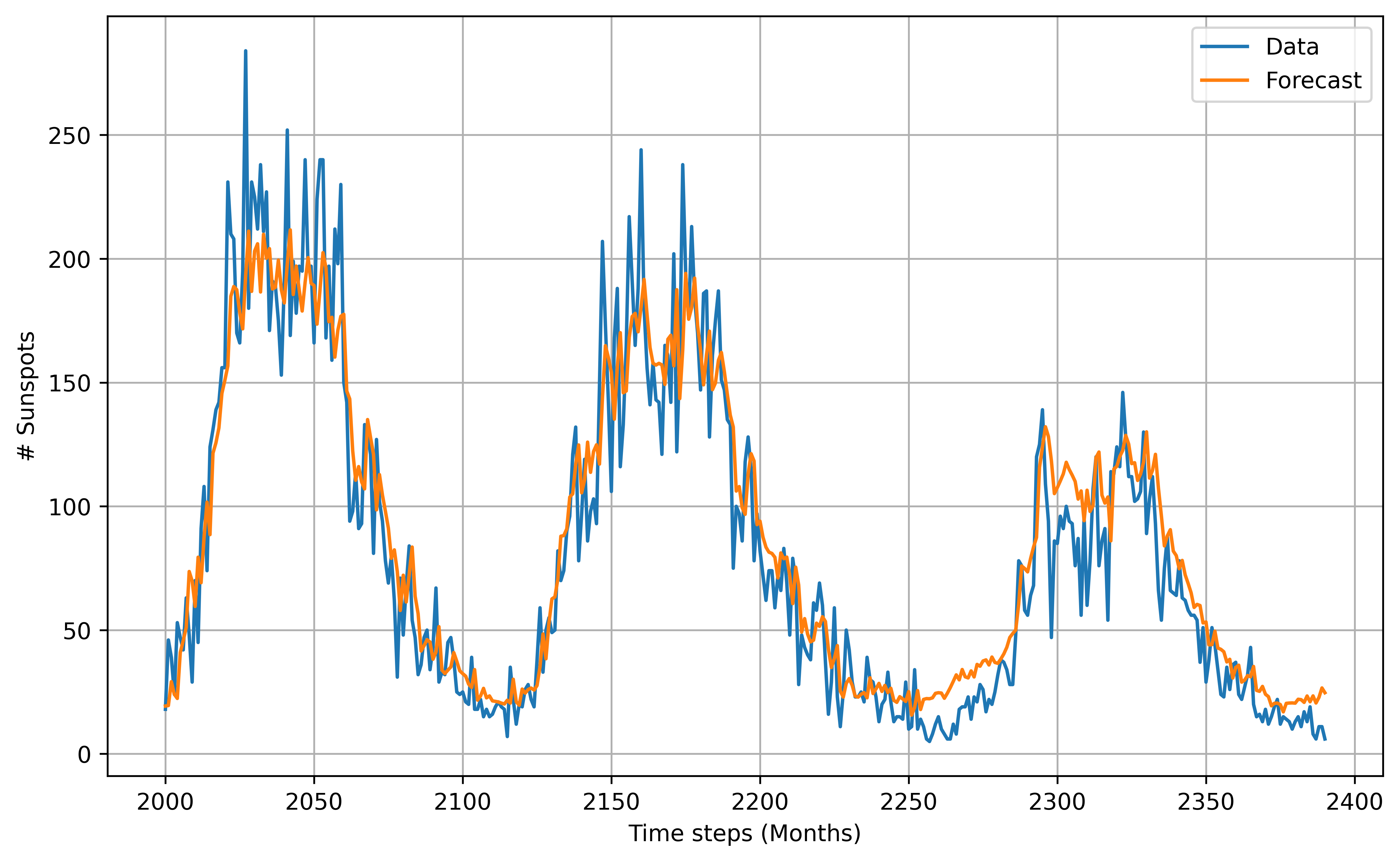 Applying ML algorithms for Time Series Modeling of Sunspots